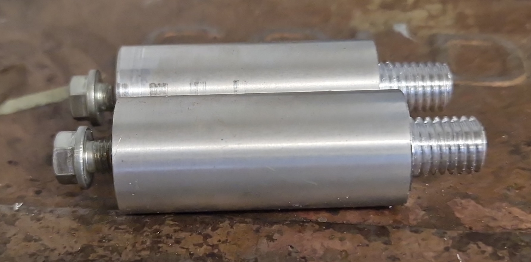 Zum Glück ist in Cookies Werkstatt eine schöne Drehbank, so konnte ich die Abstandshalter selbst drehen.