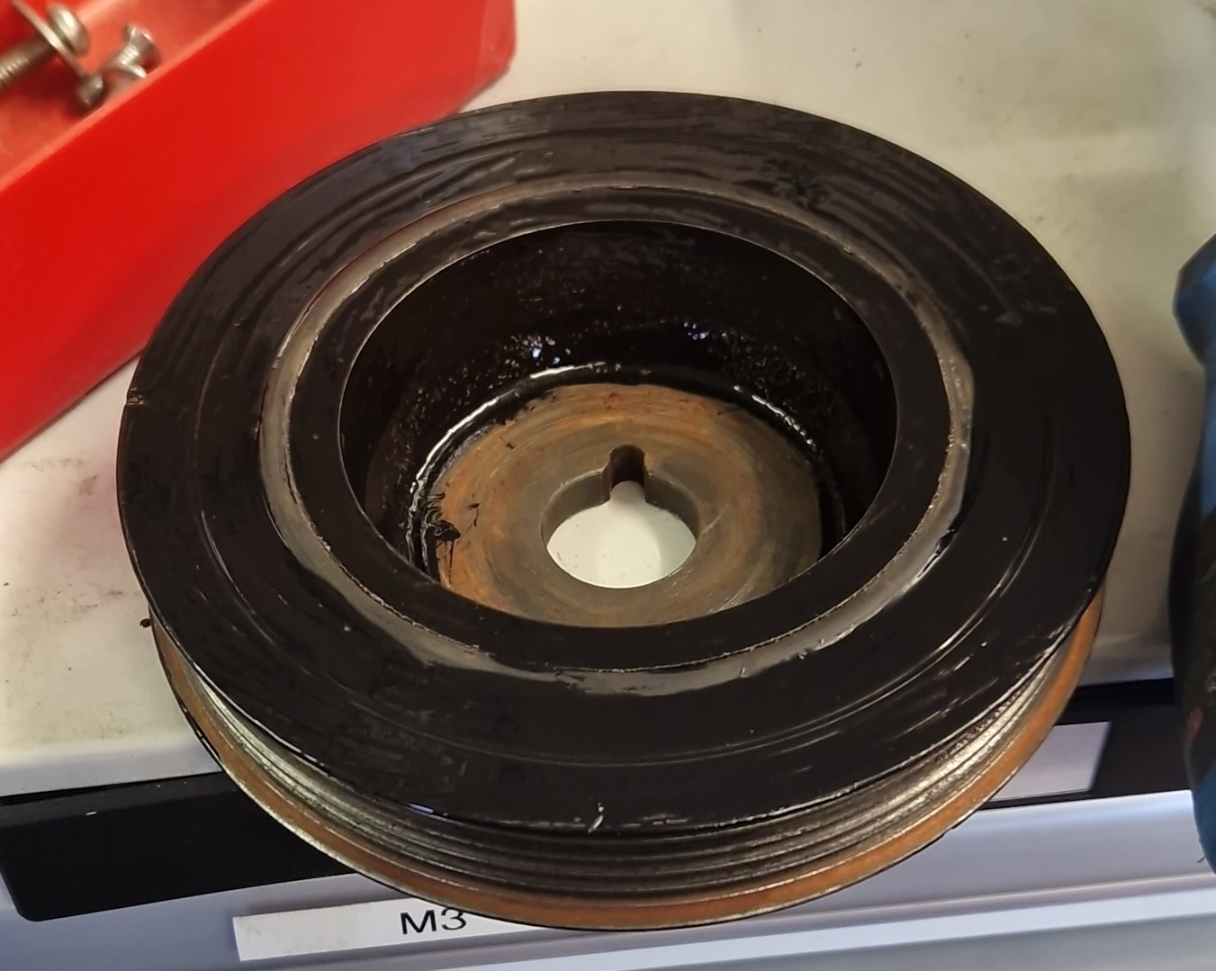Die größere Scheibe, welche die Lichtmaschine antreibt, hat einen einvulkanisierten Gummidämpfer, dieser bleibt aber vollständig erhalten, wenn man - so wie ich - die unnötige Riemenscheibe einfach abdreht.